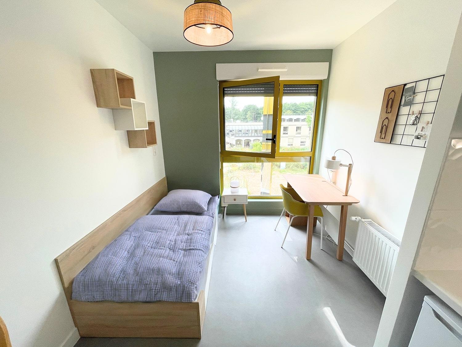 Chacun de nos logements étudiants à Jouy-En-Josas comprend un espace nuit confortable, un bureau pour travailler efficacement, des rangements pratiques pour organiser ses affaires, une kitchenette équipée avec des plaques de cuisson, un réfrigérateur, un micro-ondes et un kit vaisselle complet. Une table de repas et des chaises sont également fournies pour prendre ses repas. Enfin, chaque logement dispose d’une salle d’eau privative avec WC et d’un kit ménage pour faciliter l’entretien au quotidien. Ces logements offrent ainsi tout le nécessaire pour que les étudiants se sentent comme chez eux et puissent se concentrer sereinement sur leurs études.